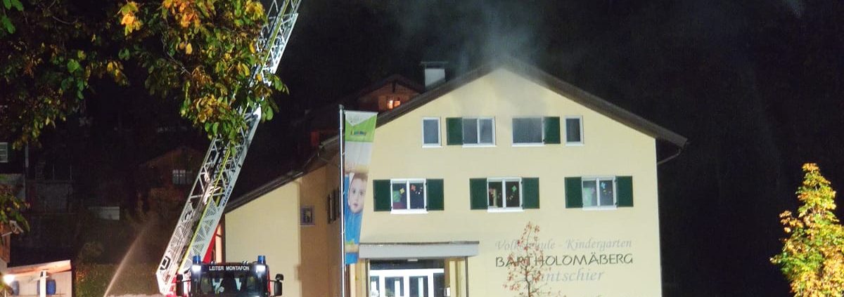 Proben / ÜbungenÜbungsannahme: f4 – Dachstuhlbrand nach Blitzeinschlag in der Volksschule Gantschier, 12 Personen (8 Kinder und 4 Erwachsene) noch im Objekt. Eingesetzte Feuerwehren: Feuerwehr Gantschier, Feuerwehr Schruns und Drehleiter Montafon (+ weitere fiktive Alarmierungen, OF Tschagguns und Vandans) Weitere Teilnehmer / Beobachter: Bürgermeister Bartholomäberg Martin Vallaster, Vizebürgermeister Georg Stampfer, AFK Markus Greber Im Verlauf der Übung […]