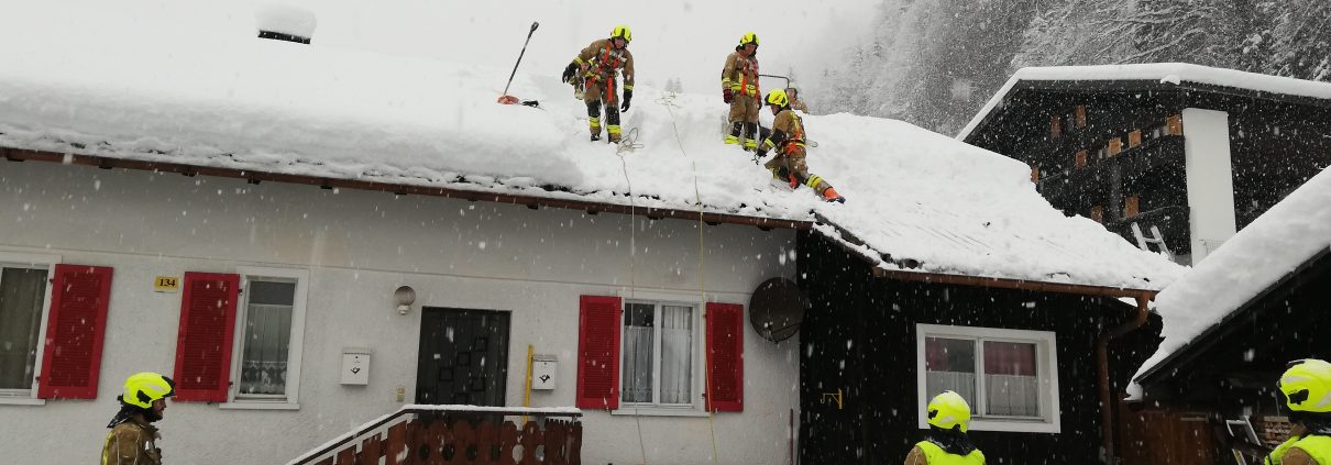 EinsätzeBedingt durch den starken Schneefall gingen am Sonntag Vormittag, den 13.01.2019 mehrere Anrufe bezüglich der Schneelast auf verschiedenen Objekten ein. Die Objekte wurden alle mit einem Bautechniker geprüft und beschlossen, dass bei zwei Objekten die Schneemassen abgetragen werden muss. Die Ortsfeuerwehr Gantschier stand mit 21 Mann im Einsatz.